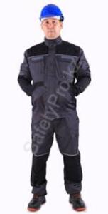 Куртка прямая с центральной застежкой на молнии с двумя карманами. Брюки с накладными карманами.