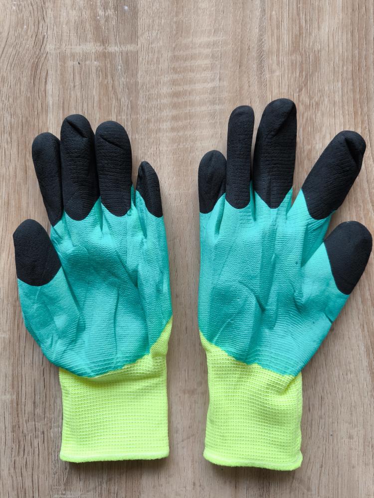 Перчатки нейлоновые с вспененным латексным покрытием. За счет рифленой противоскользящей поверхности перчатки надежно удерживают коробки, доски и скользкие или промасленные, например, стекла, листы металла, детали машин.